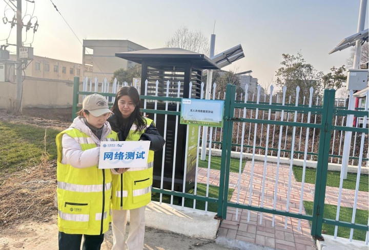 工作人员在无人农村观测站进行网络测试。安徽移动供图